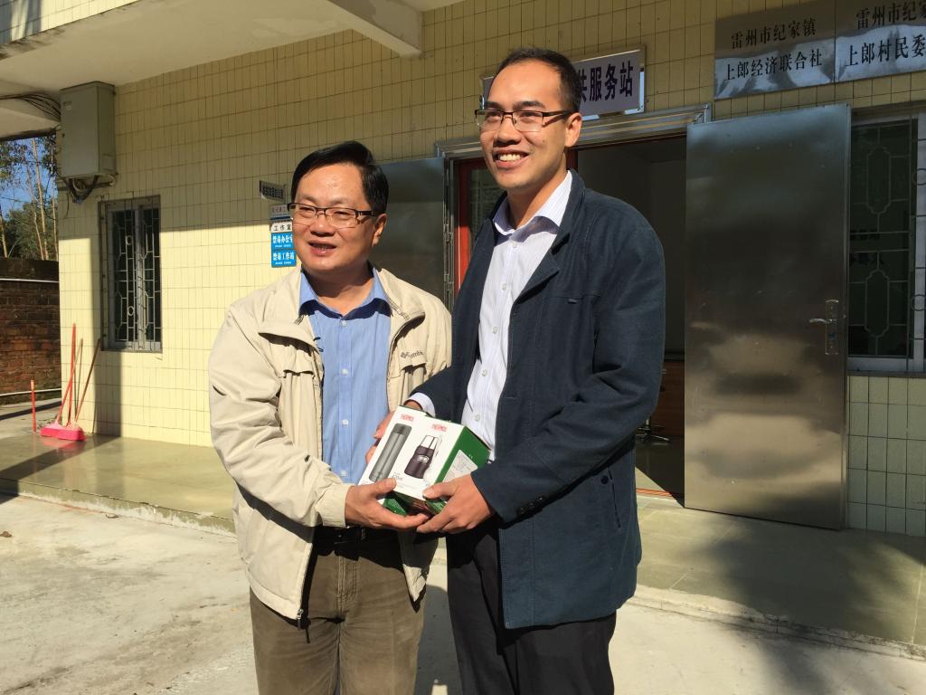 夏伟校长为我校派驻雷州扶贫干部郑志健献上慰问品