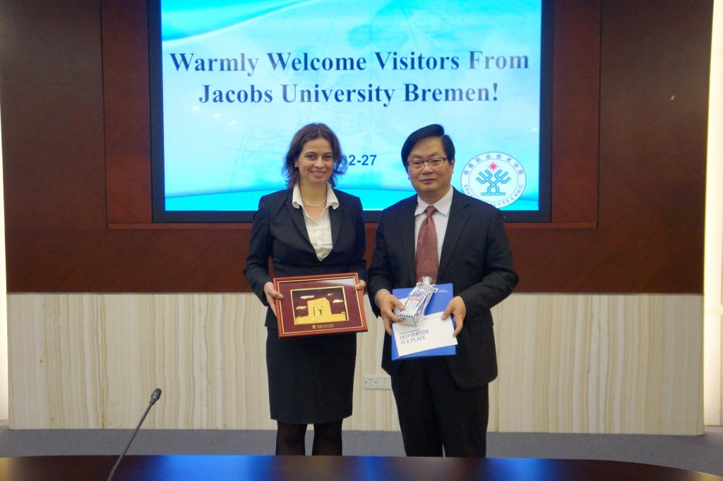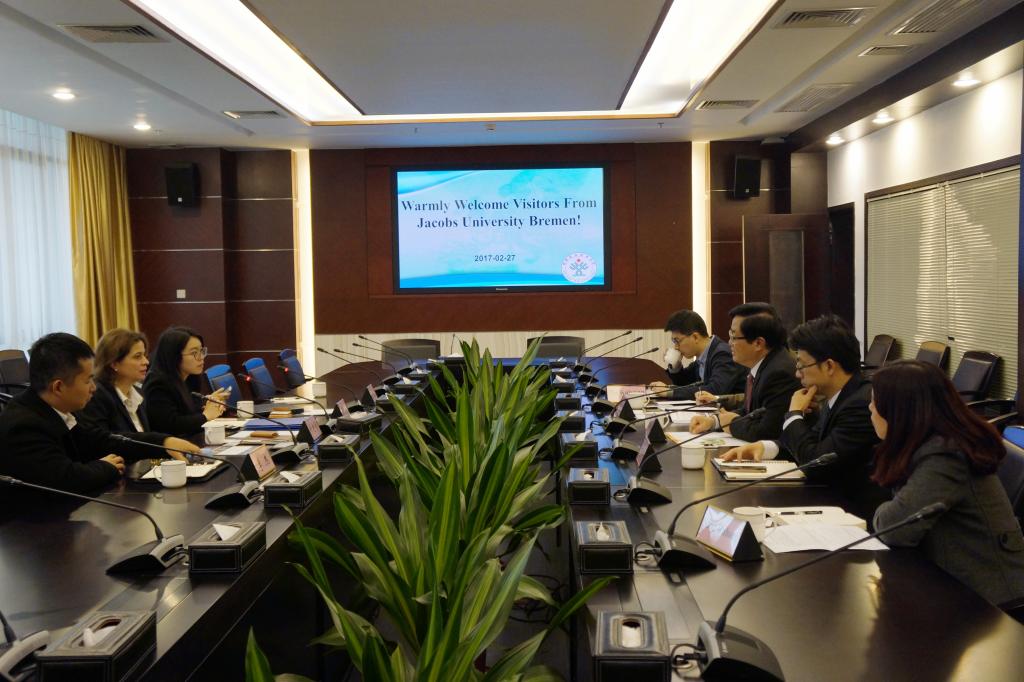 2月27日下午,德国不来梅雅各布大学校长温特博士(Dr.Katja Windt)在佛山中德工业服务区管委会招商局副局长李杰的陪同下,一行5人来访我校。我校夏伟校长,党办校办、电子与信息工程学院、国际交流与合作处的负责人及相关教师接待了来宾。