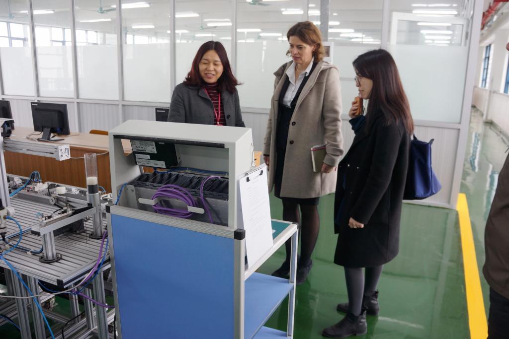 温特校长一行参观了我校机电工程学院制冷与液压实训室、电子与信息工程学院系统集成实验室、设计学院毕业生作品展、节能监控平台,对我校的办学环境和设施表示赞誉。