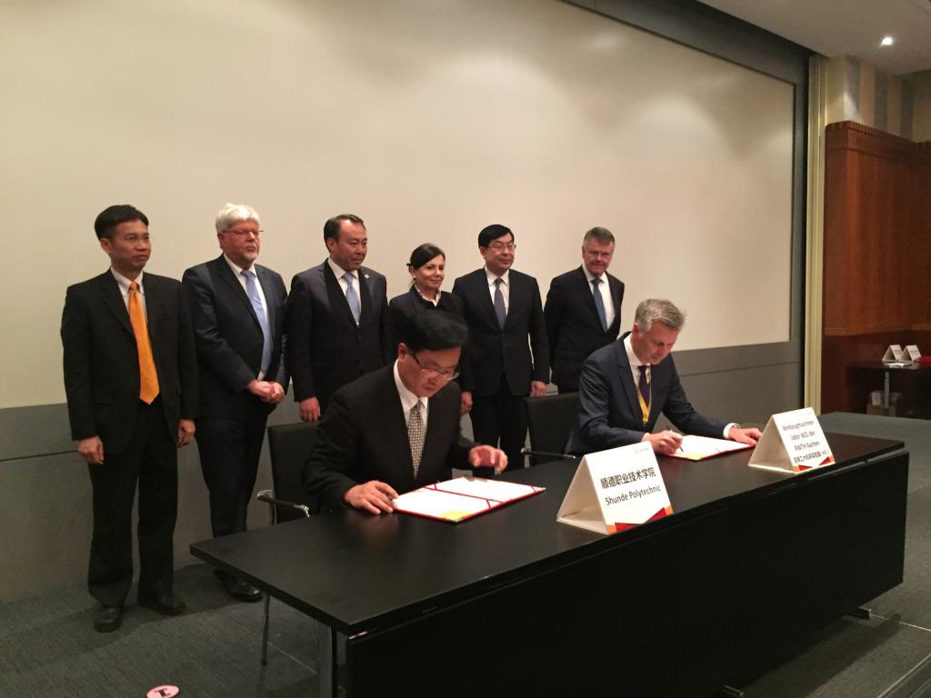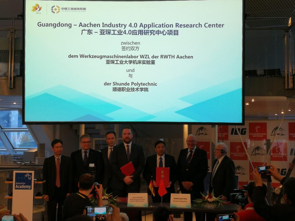 4月24日,在德国汉诺威工业博览会期间,我校与德国亚琛工业大学就联手共建“广东—亚琛工业4.0应用研究中心”正式签约。