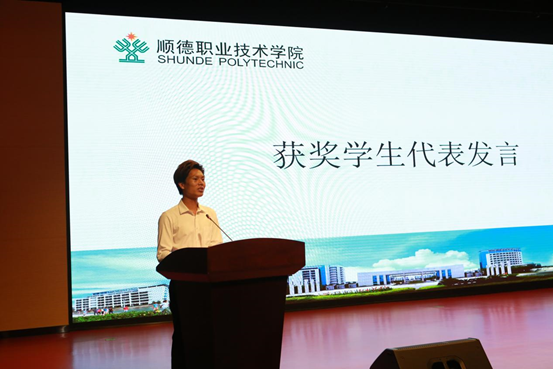 获奖学生代表、酒店与管理学院2015级烹饪6班黄宝辉同学代表全体获奖学生发言,他代表同学们感谢李佘少鸿校董的关心与厚爱,并表示在学校学习的过程中,学会做人、做事,将来一定不辜负学校的培育之恩和李佘少鸿校董的关爱之情,争取有朝一日在自己有能力的时候,也用自己的行动去感恩社会,做一个有贡献于社会的人。