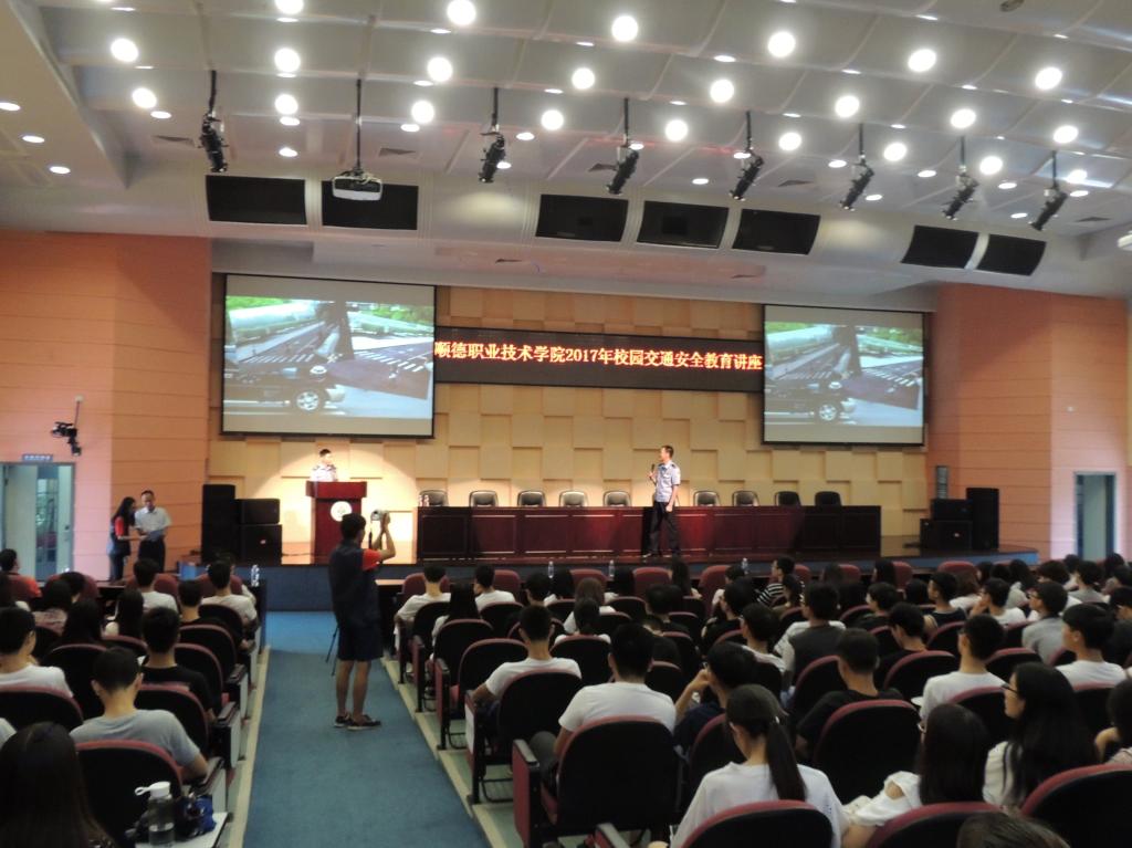 2017年6月21日,我校与顺德区公安局联合举办了2017年校园交通安全教育报告会。报告会在我校学术交流中心举行,我校纪委书记谭谦章,顺德区公安局大良分局有关领导,学校保卫处、学生工作部、校团委相关负责人以及师生代表500多人参加了本次报告会。