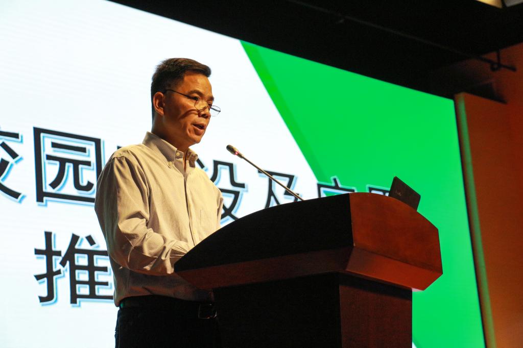 会上,陈粟宋副校长做了题为《扎实推进智慧校园建设 为职业院校智慧校园建设提供经验》的报告。他从战略层面分析我校智慧校园建设的背景和意义,一是国家战略驱动,近年来国务院、教育部、省教育厅颁发一系列信息化建设的文件,要求信息技术与教育教学深度融合,这是智慧校园建设的根本动因。二是城市战略驱动。智慧校园建设符合智慧城市发展趋势。三是新兴技术驱动。移动互联网、大数据、云计算、物联网等新兴技术的快速发展驱动校园由数字化向智慧化方向快速迈进,为智慧校园的实现创造了无限可能。四是学校战略驱动。我校以国际化、法制化、智慧化为发展战略目标,智慧校园建设就是要为学校战略目标实现提供技术保障。