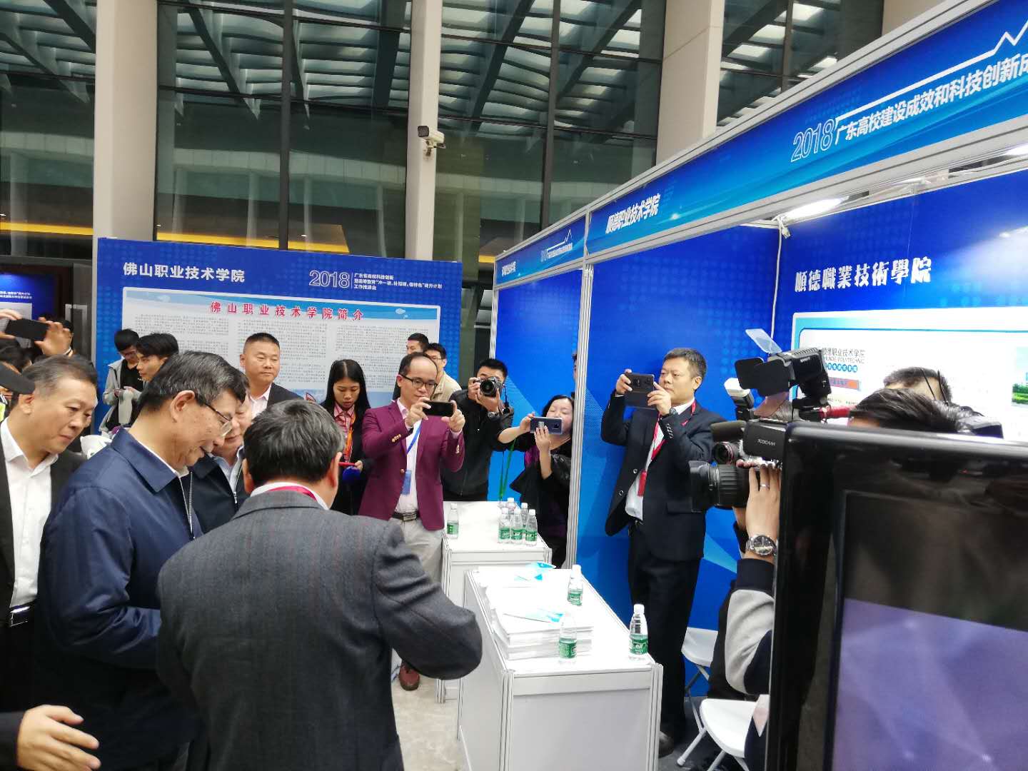 期间,广东省副省长黄宁生、佛山市市长朱伟、广东省教育厅厅长景李虎等领导到我校展板参观,陈粟宋副校长详细介绍了我校的办学成果和广东亚琛工业4.0应用研究中心的建设情况。