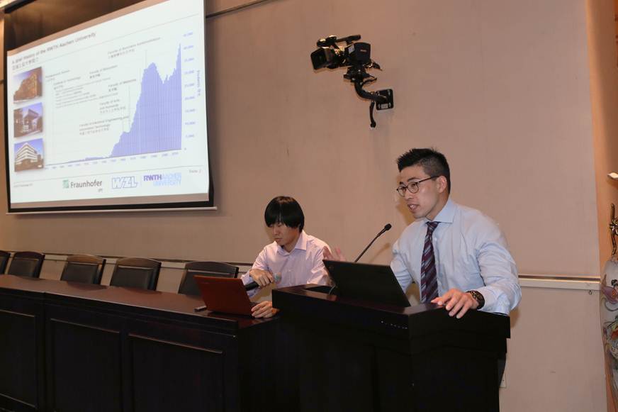 本次培训与研讨会由广东-亚琛工业4.0应用研究中心德方7位专家和国际知名公司海克斯康专家主讲。研究中心德方项目经理Quoc Hao Ngo重点介绍了德国亚琛工业大学WZL(机床实验室)在工业4.0技术应用方面与企业技术合作的案例,以及德国研究性大学如何为企业进行技术创新和项目实施的经验;德方专家Jimmy Chhor、代茹诗、Aline Kluge、Sören Münker等以广东-亚琛工业4.0应用研究中心正在实施的示范工厂项目为背景,分别介绍了总装线、物流、建造机械等工业4.0技术应用专题,详细介绍了项目的技术路线、关键技术、实施过程和预见的效果等内容。海克斯康测量技术(青岛)有限公司的区域经理管钊做了“推动以质量为核心的智能制造”报告,介绍了质量检测、在线测量、计量检测方法以及质量工程师提升等内容。会后各位专家与参会企业代表进行了互动,回答了企业感兴趣的问题。