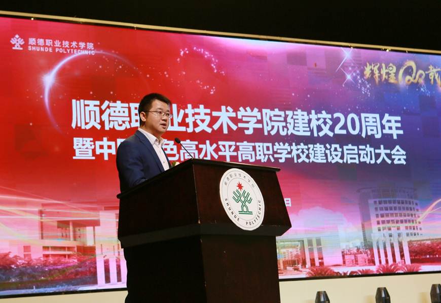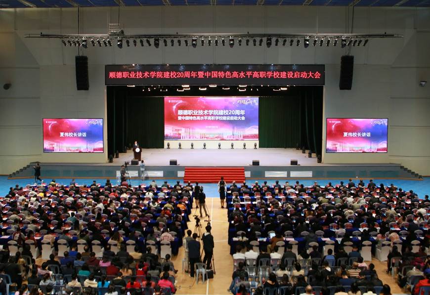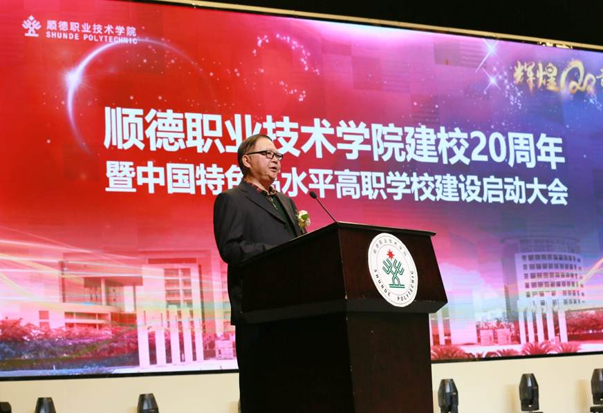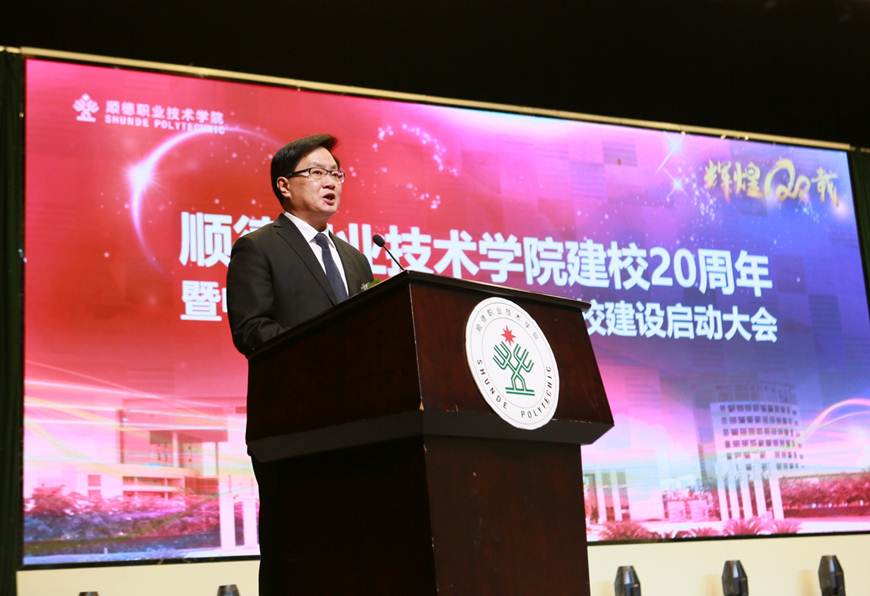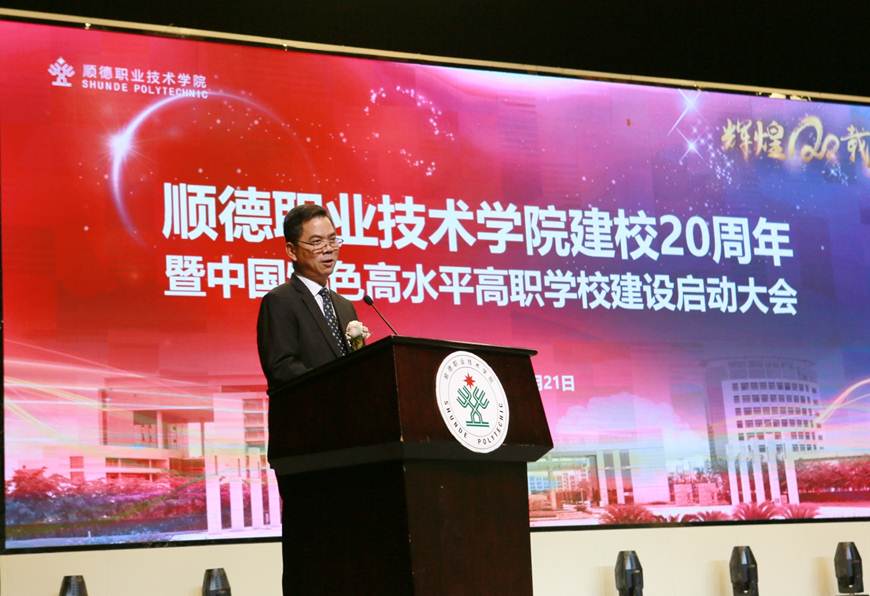 在建校20周年之际,我校入选中国特色高水平高职学校建设单位。12月21日下午,学校建校20周年暨中国特色高水平高职学校建设启动大会在梁銶琚堂隆重召开。广东省人大常委会原副主任、学校原党委书记陈用志,清华大学原常务副校长杨家庆,佛山市委副书记、顺德区委书记、学校党委书记郭文海,佛山市人大常委会原副主任冯润胜,原顺德市政协主席招汝基,学校名誉院长陈智,顺德区副区长蔡伟,区政协副主席徐国元,顺德区政府相关部门代表,企业界代表,校友代表,学校现任以及退休党政班子成员,全校教职工及学生代表等近3000人参加了大会。大会由学校党委副书记、副校长刘毓主持。
