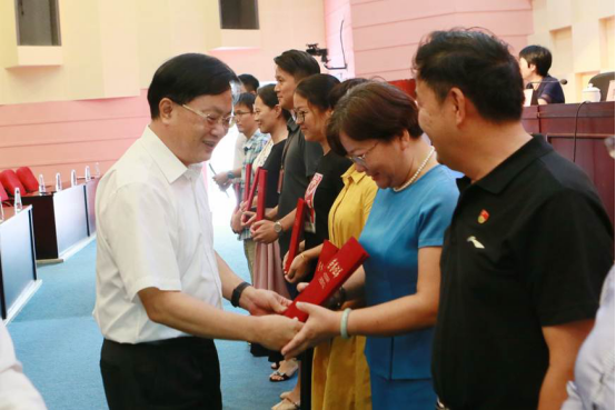 学校校长夏伟为获区级以上表彰的优秀教师颁奖