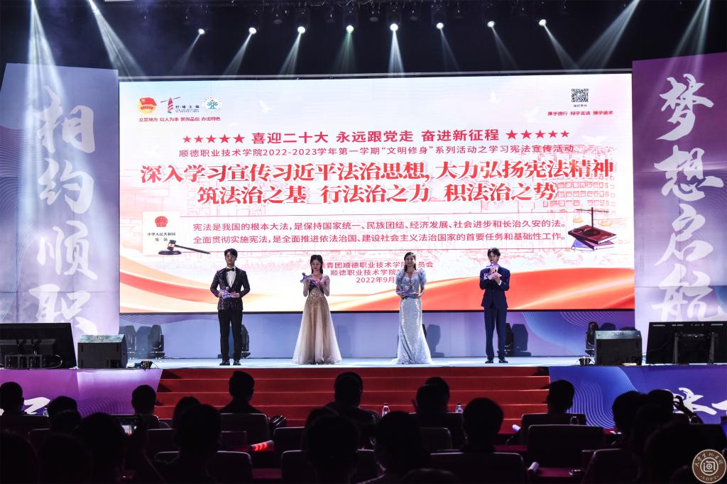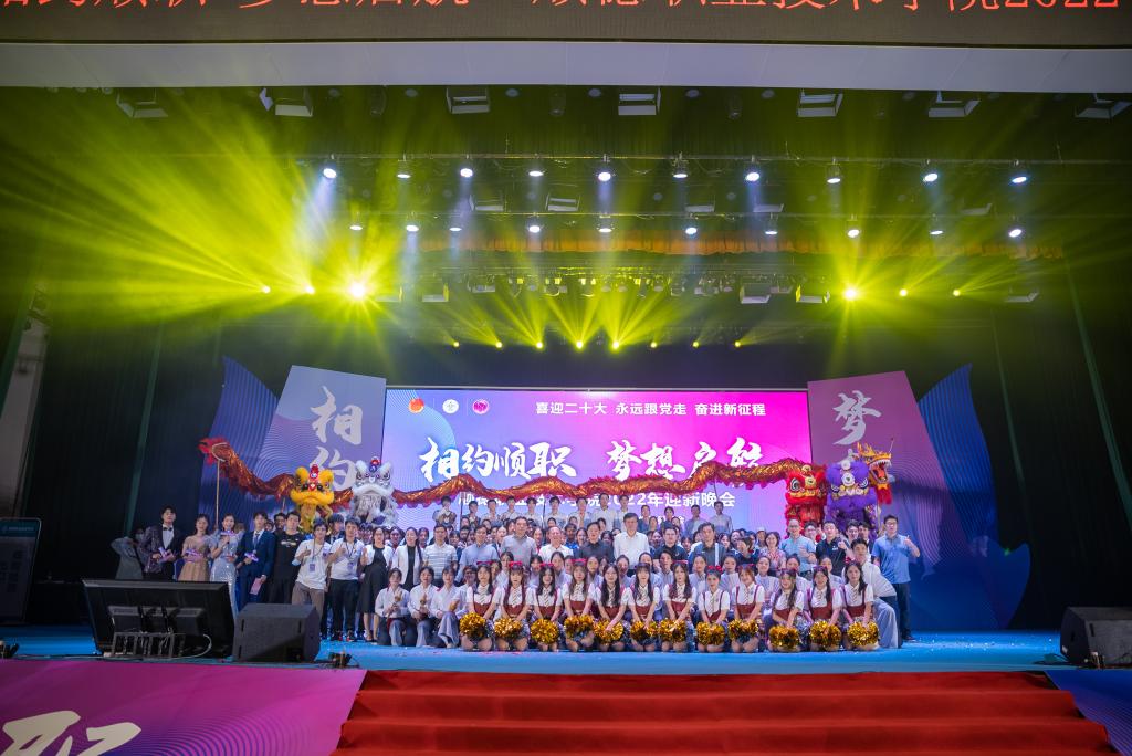 9月28日晚,学校2022年迎新晚会在梁銶琚堂举行。共青团佛山市顺德区委员会副书记叶炜杰,佛山预备役国防教育基地总指挥杜昌彬,学校党政领导班子成员,各职能部门、二级学院负责人,全体2022级新生参加活动。