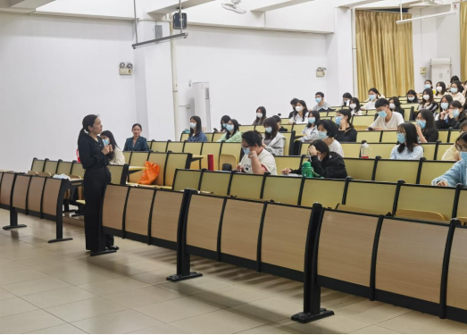 “面试礼仪”主题讲座由广州品硕教育公司高级礼仪讲师关秋元主讲。关秋元表示,礼仪是用恰当的方式表达对对方的尊重;面试礼仪不仅可以展现一个人的教养、风度、气质和魅力,还能体现一个人对社会的认知水平,体现个人的学识、修养和价值。她从仪行三礼(微笑+注目+点头)、仪态举止(站姿+坐姿+行姿)、仪容仪表、服装配饰四个方面向同学们分享需要注意的面试礼仪,从出场三定(站定+眼定+笑定)讲到递接礼、鞠躬礼,从自我介绍讲到出门离场,向同学示范得体的面试礼仪,引起同学们的极大兴趣,现场笑声掌声不断。讲座结束后,很多同学兴致勃勃地围在关老师身边咨询请教。