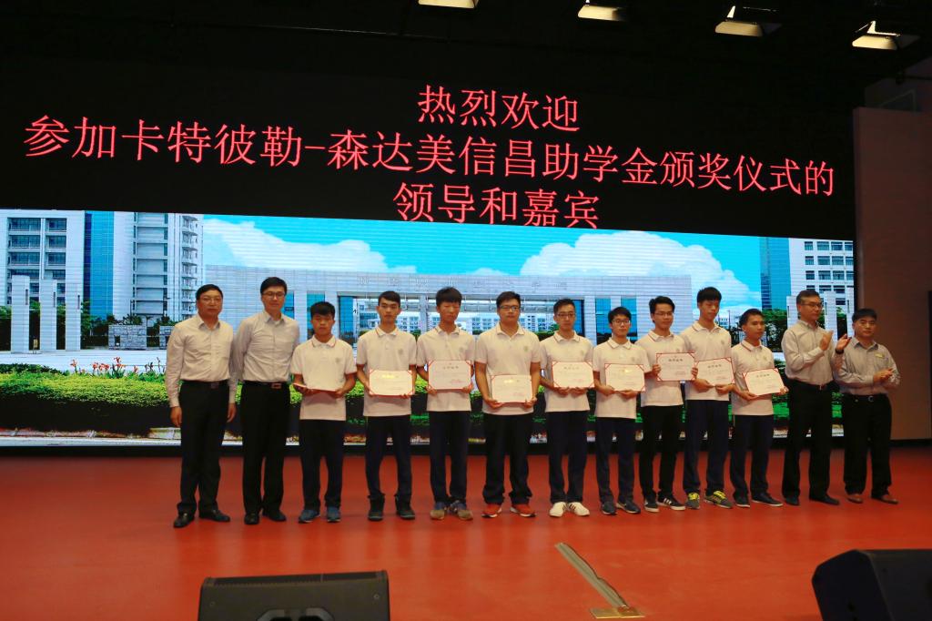 10月12日下午, 2015-2016学年卡特彼勒-森达美信昌助学金颁奖仪式在李佘少鸿楼报告厅顺利举行。卡特彼勒-森达美信昌公司董事总经理邵志仁、人力资源部总经理李健成、人力资源部员工关系经理刘祥, 我校副校长陈粟宋,党委宣传部、学生工作部、机电工程学院等部门相关负责人以及师生代表近400人参加了本次颁奖仪式。颁奖仪式由学校基金会办公室负责人主持。