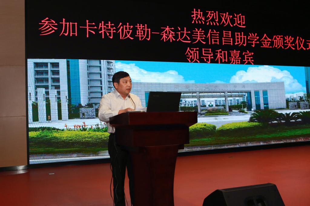 陈粟宋副校长代表学校感谢信昌公司一直以来对学校人才培养的关心与支持,感谢企业、老师们为此所做出的努力和贡献,并对获奖同学表示祝贺。他希望同学们珍惜企业给予的帮助和勉励,要感恩企业,同时希望同学们要向企业学习,刻苦训练本领,毕业后用自己的实际行动,回报企业、回报社会,做一个有贡献于社会的人。