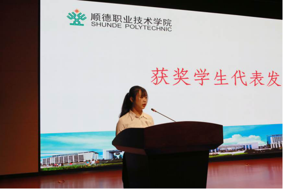 获奖学生代表高雅婷发言,她表达了对顺发商会捐助的感恩,感谢校领导和老师对同学们的帮助和鼓励,表示在未来的学习和生活将会不骄不躁,继续努力。