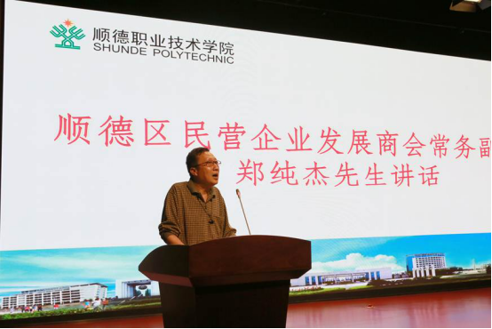 郑纯杰致辞。他代表顺发商会向获得奖学金的同学们表示祝贺,他表示,设立奖学金的宗旨在于激励学生感恩励志,勤奋好学,追求卓越,成就梦想,做新时代有为青年。他表示将会继续凝聚更多顺德区民营企业的力量,支持顺职烹饪学院的人才培养,为传承顺德美食文化做出积极贡献。