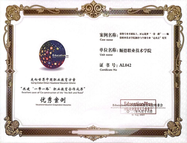 此外,学校能源与汽车工程学院国际化案例《“强势专业开疆拓土,匠心筑梦‘一带一路’——顺德职业技术学院制冷与空调专业‘走出去’纪实”》被评为“走向世界中国职业教育方案——共建‘一带一路’职业教育合作成果”典型案例。同时,在本次大会的分会场“‘一带一路’国家职业标准共建学术研讨会”上,我校凭借轻化与材料学院国际职业标准共建项目,被授予“老挝国家职业标准共建项目示范建设单位”牌匾。基于我校服务“一带一路”建设的一系列成果,我校在本次大会上被评选为“2023年职业教育对外交流与合作典型院校”。